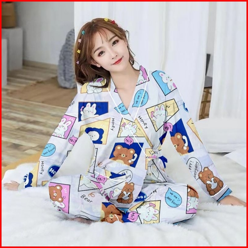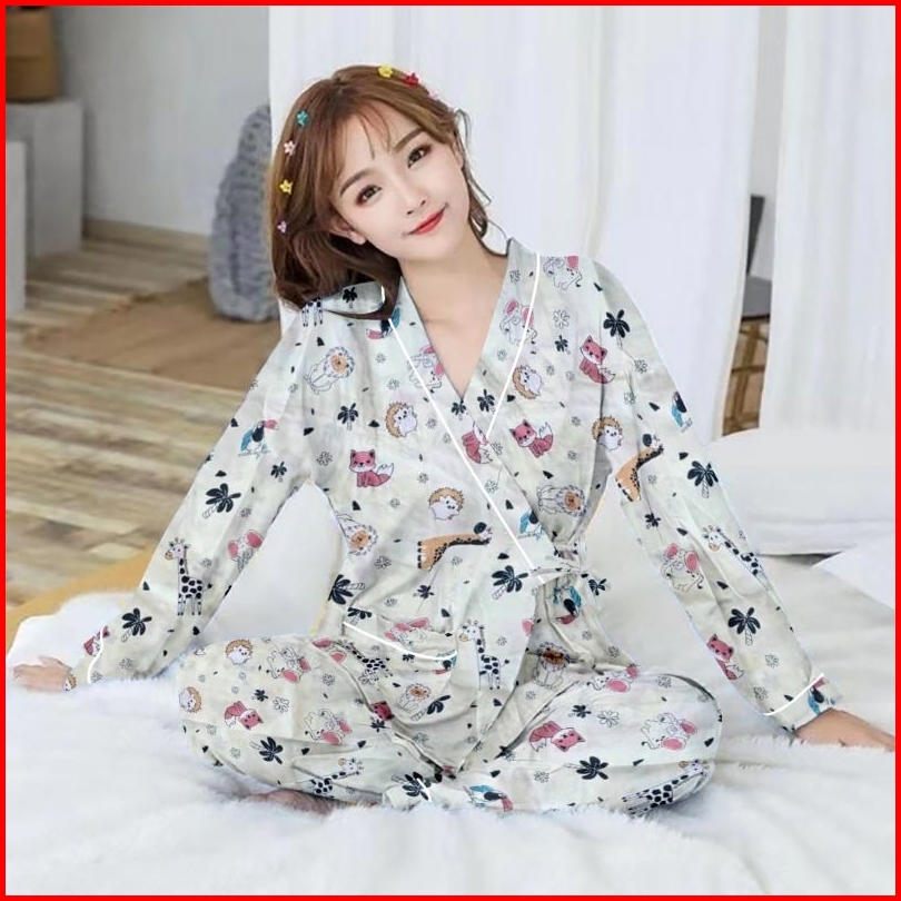 Baju Tidur Kimono Set Kimono Wanita Terbaru Kimono Lengan Panjang Katun Pp Kimono