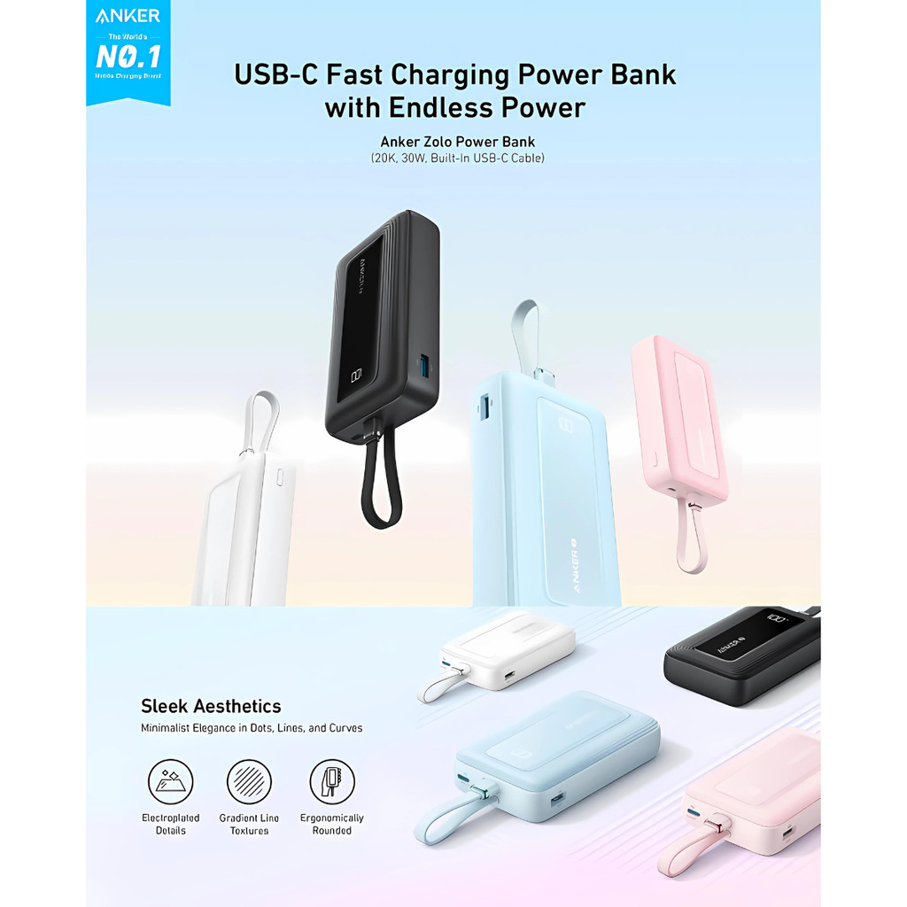 ANKER Zolo Powerbank 30W 10000mAh A1688 Built in USB-C Cable Fast Charging PD 3.0 Garansi Resmi
