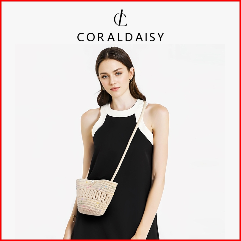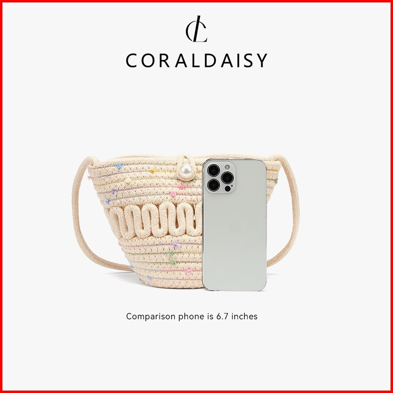 Coraldaisy Tas Wanita 2025 Tas Anyaman Tas Selempang Tombol Mutiara Sling Bag Tas Kecil Tas Bahu