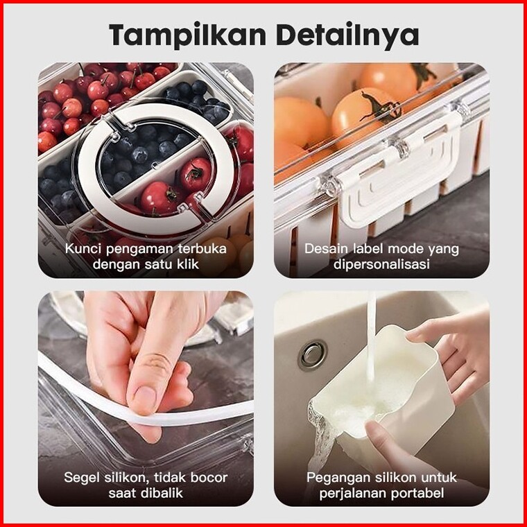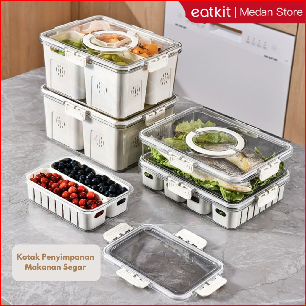 Medan Ready Stock Eatkit Kotak Penyimpanan Makanan Wadah Sayur Dan Buah Tempat Bumbu Dapur 4 Grid 8 Grid Food Container