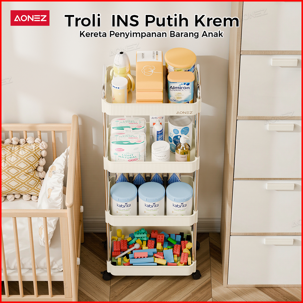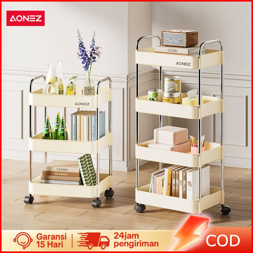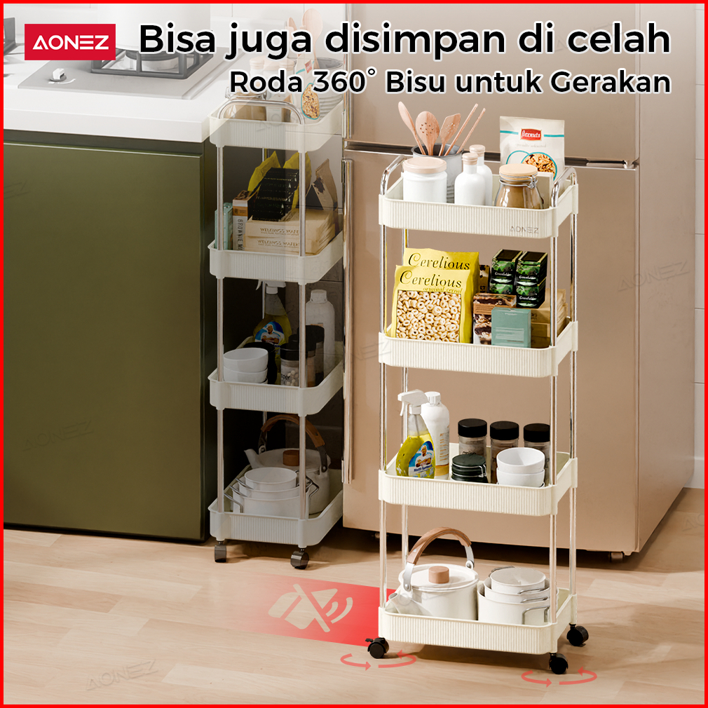 Aonez Rak Troli Susun Stainless Steel Kotak Penyimpanan Kosmetik Rak Kosmetik 4 Tingkat Dengan Roda Serbaguna Rak Kamar
