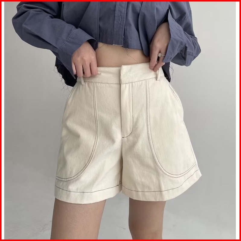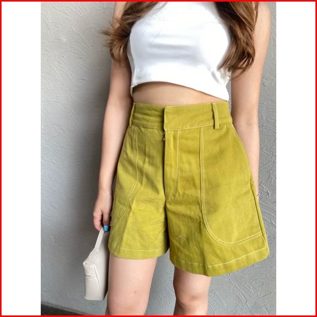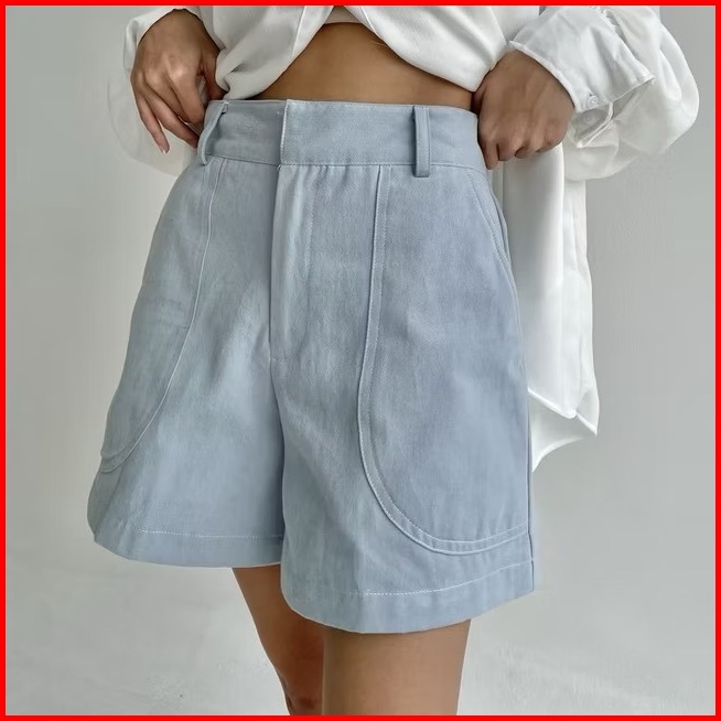 Hotpants Karina Contrast Stitch Short Premium Pants Celana Pendek Streach Wanita Denim Look Alike