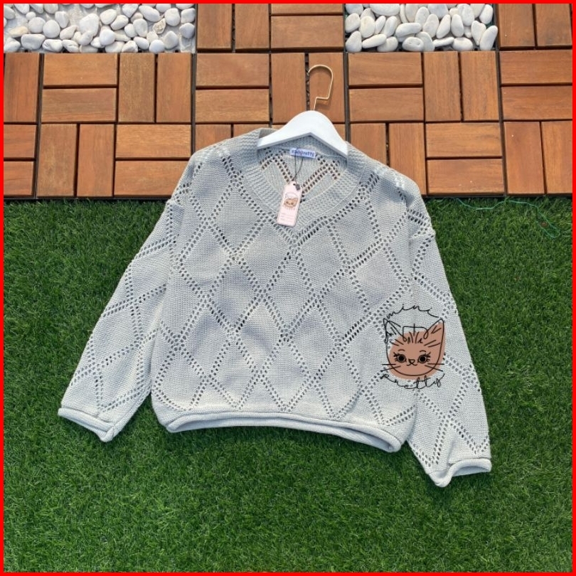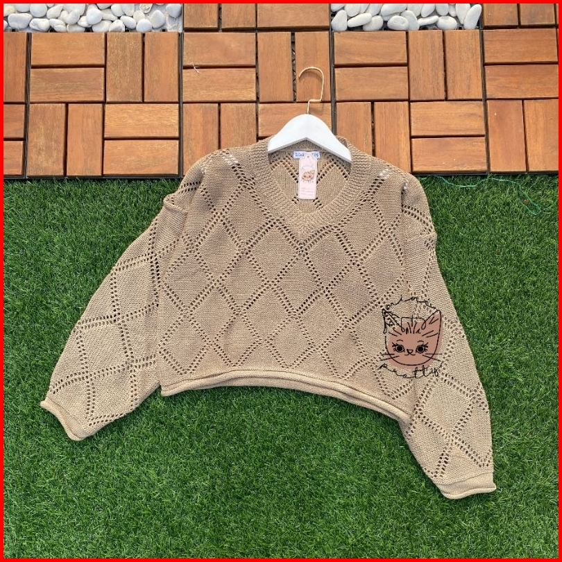 Atasan Rajut Bolong Jaring Sido Ketupat Hollow Sweater