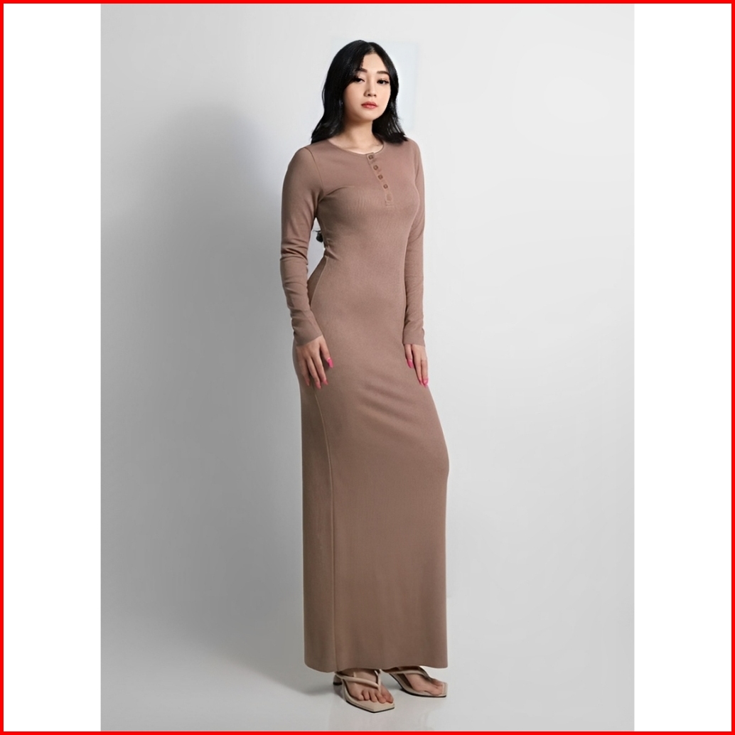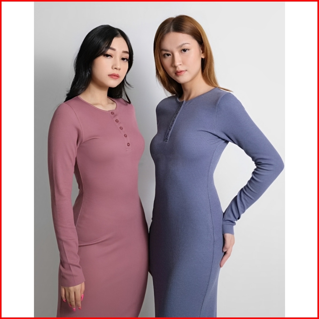 Arisha Dress Wanita Press Body Bahan Knit Rib Premium Model Kancing Depan Korean Style Ootd Remaja