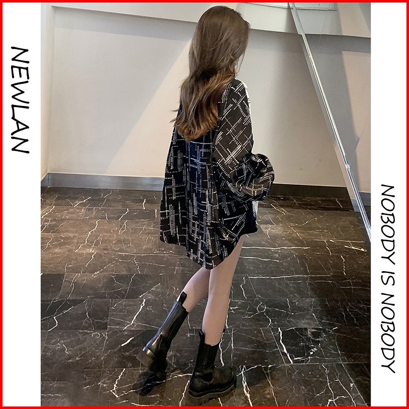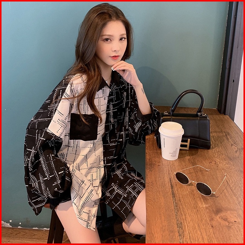 Newlan Cs008 Blouse Oversize Korea Kemeja Kombinasi Wanita Kemeja Korea Jumbo Wanita