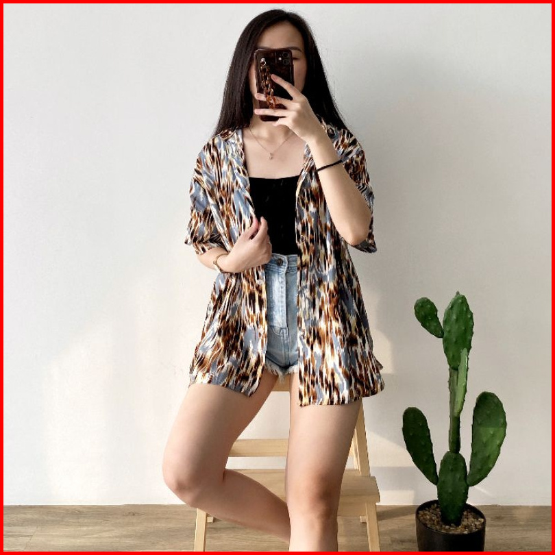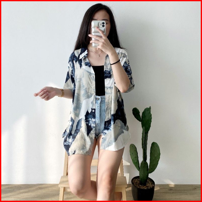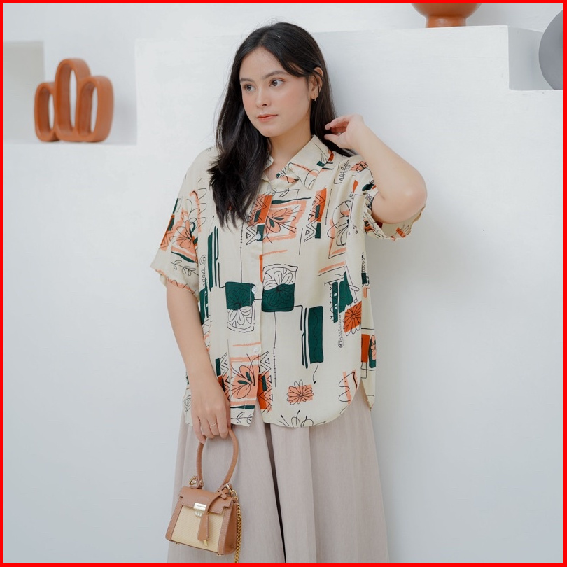 Kemeja Wanita Vintage Hawai Kemeja Pantai Abstrak Casual Retro Bahan Rayon Vicouse Premium