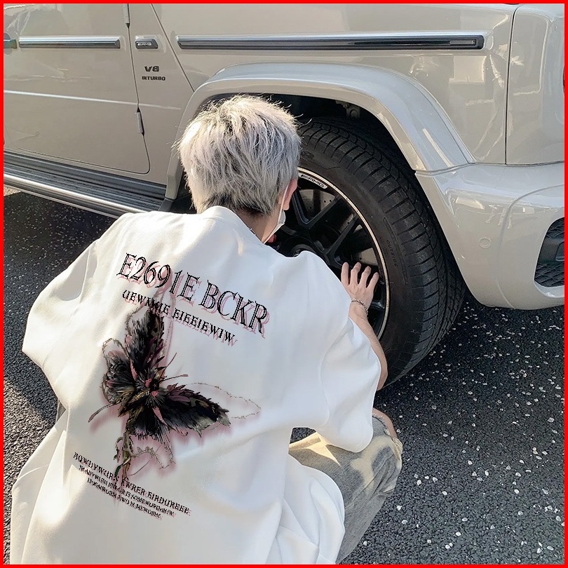Auzy Kaos Pria Flower Butterfly Baju Distro Original 100 Retro Style Tshirt Longgar Kaos Import Baju T Shirt Pria