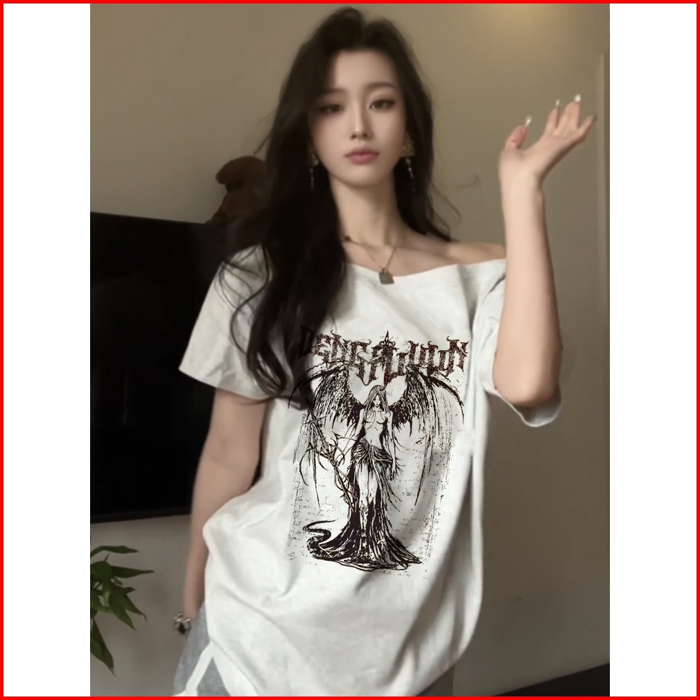 2toyoung Malaikat Kebebasan Vintage Amerikatshirt Y2k Asymmetrical Offshoulder Top Ahs Streetwear Stockholm Vintage Retr