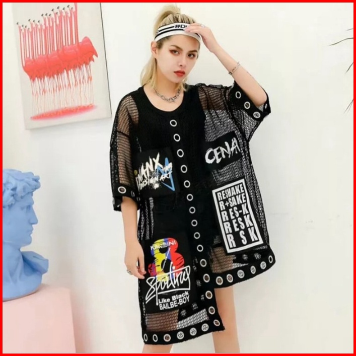 Blus Jarig Harajuku Keren Blus Jaring Keren Blus Jaring Korean Style