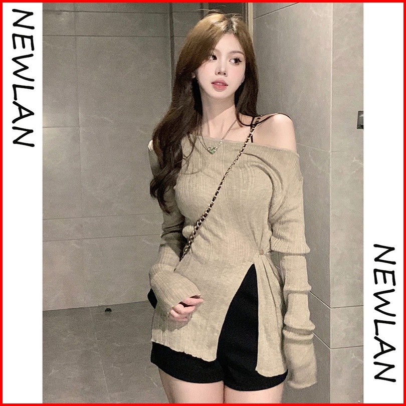 Newlan Zz056 Knitwear Wrap Kaos Rajut Wanita Lengan Panjang Atasan Rajut Crop Knit Polos V Neck Lengan Panjang Wanita Sw
