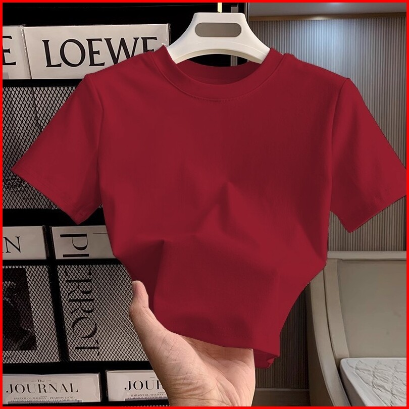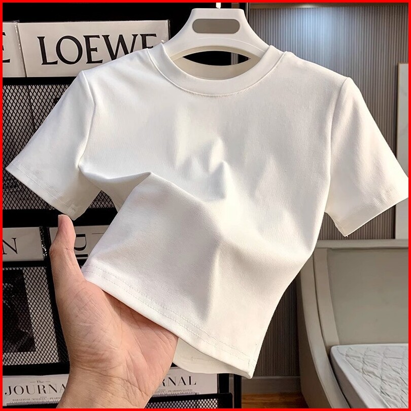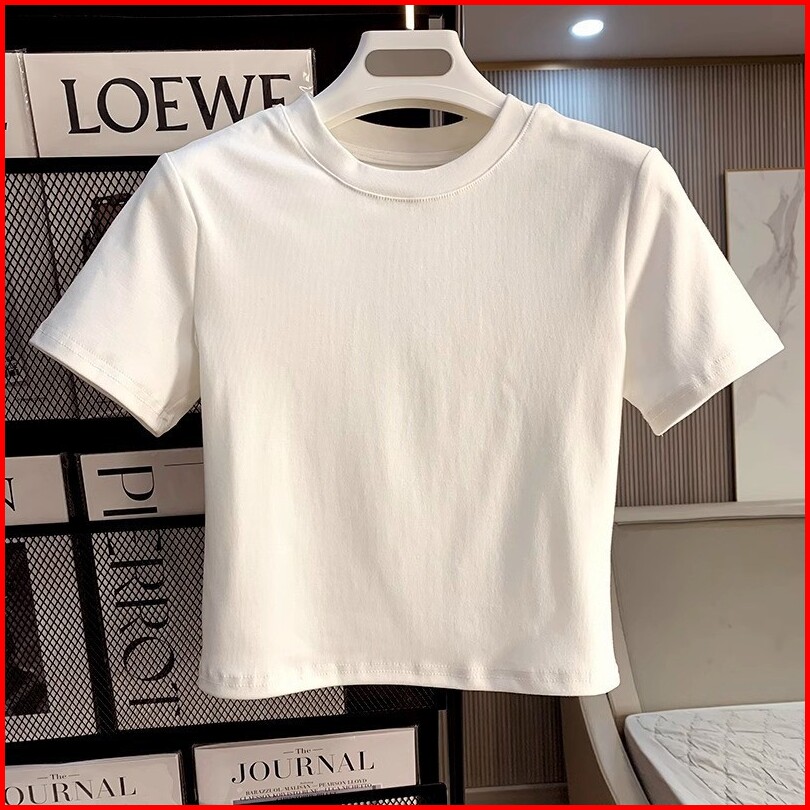 Kaos Crop Wanita Korea Crop Top Putih Polos Kaos Crop Polos Wanita Kaos Rib Lengan Pendek Crop Top Putih Polos