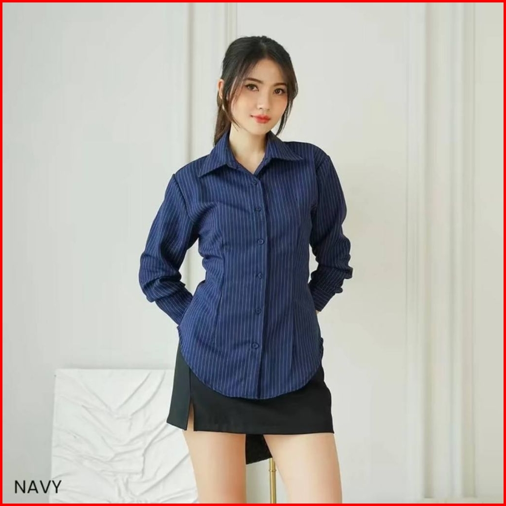 Luna Stripe Kemeja Fitted-kemeja Stripe Viral-atasan Fit Body-kemeja Wanita Lengan Panjang Terlaris
