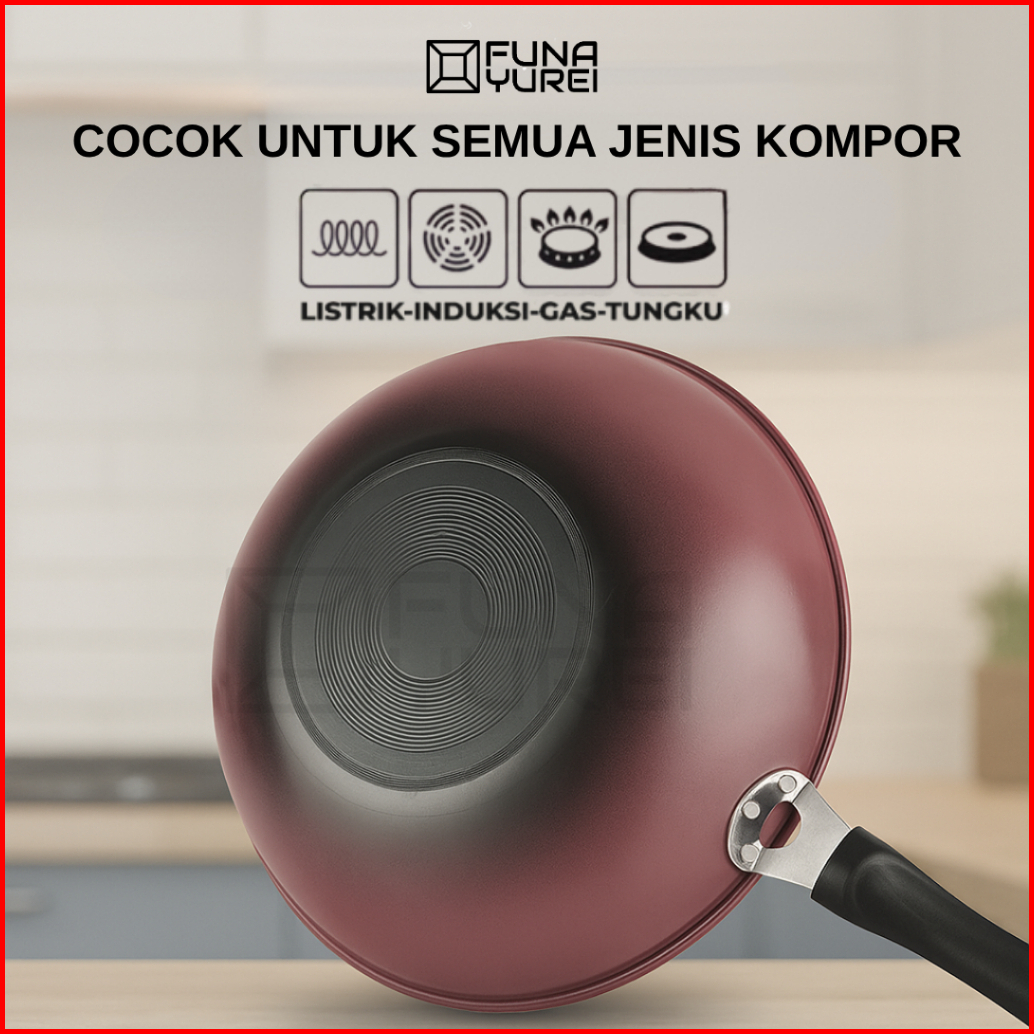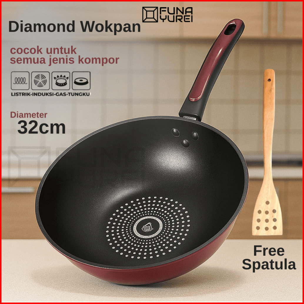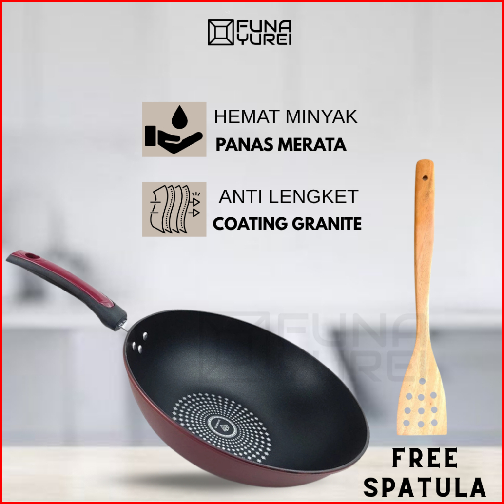 Funayurei B3 Diamond Wok Pan 32cm Wajan Anti Lengket Batu Medis Cocok Untuk Masak Harian Spatula