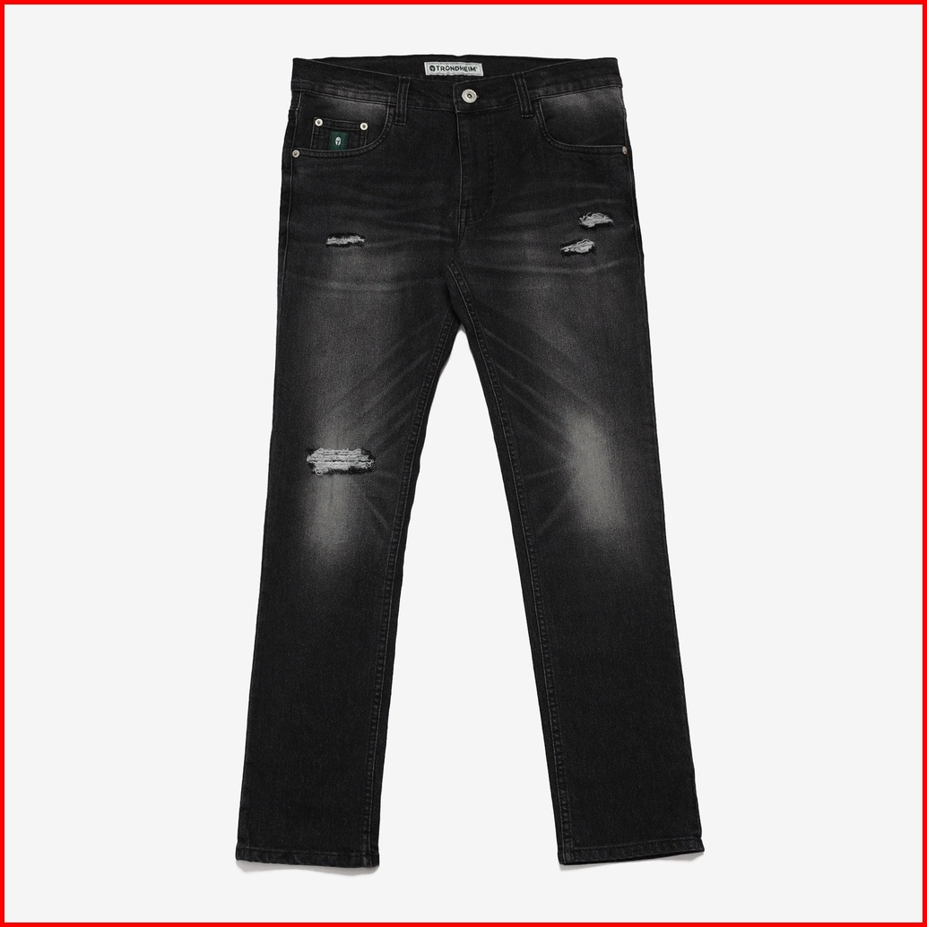 Trondheim Celana Jeans Denim Pria Sobek Alain Whisker Blackjazz Indigo