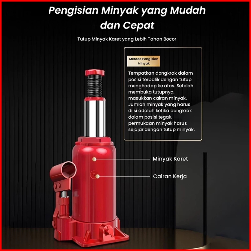 Dongkrak Botol Hidrolik 2 3 5 6 8 10ton Bahan Baja Kuat Anti Karat Hydraulic Jack Portable