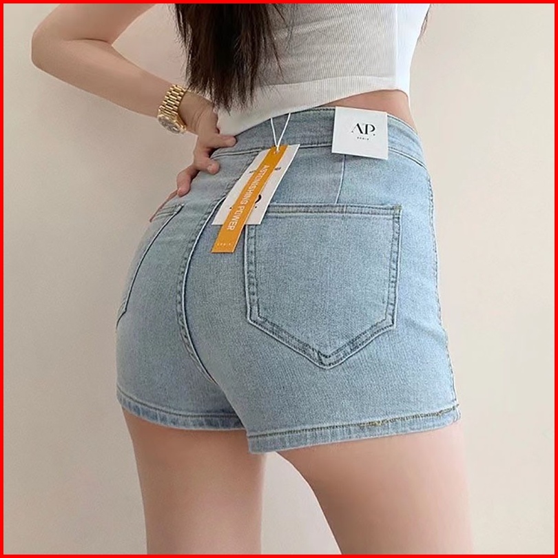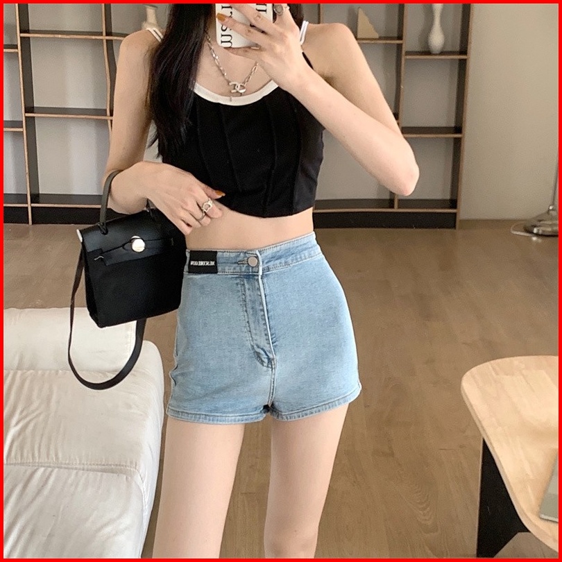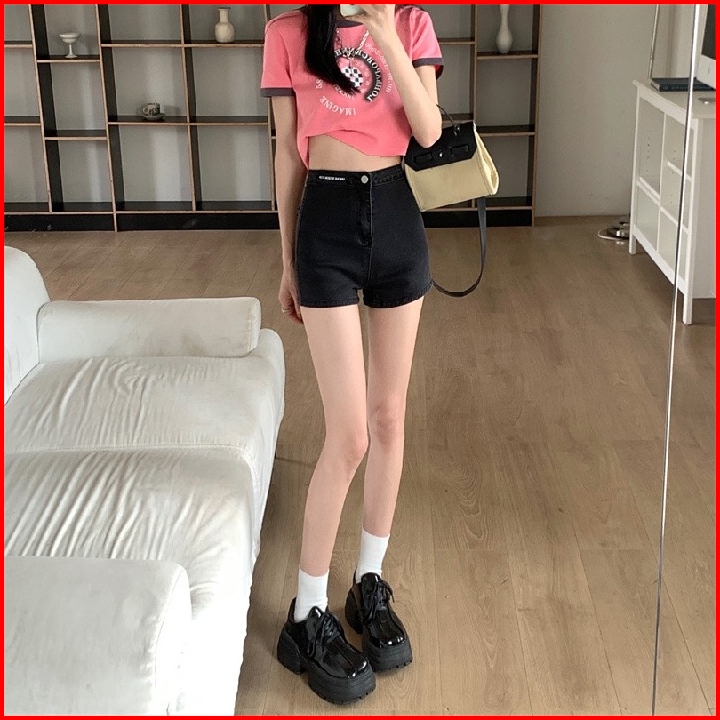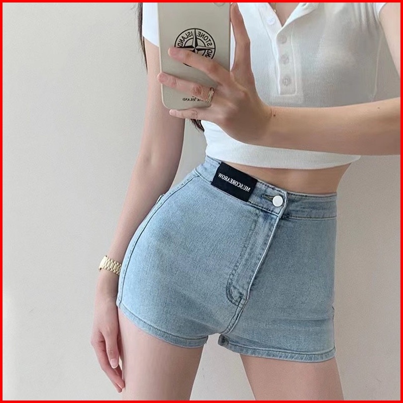 Newlan Dk009 Celana Pendek Denim Pinggang Tinggi Wanita Celana Pendek Wanita Korea Style Short Jeans Fashion Tampak Kuru