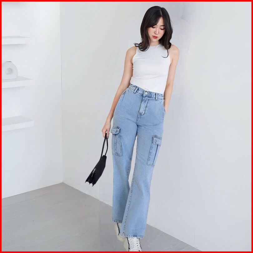 Celana Jeans High Waist Wanita Highwaist Kulot Jeans Wanita Loose Celana Jeans Cargo