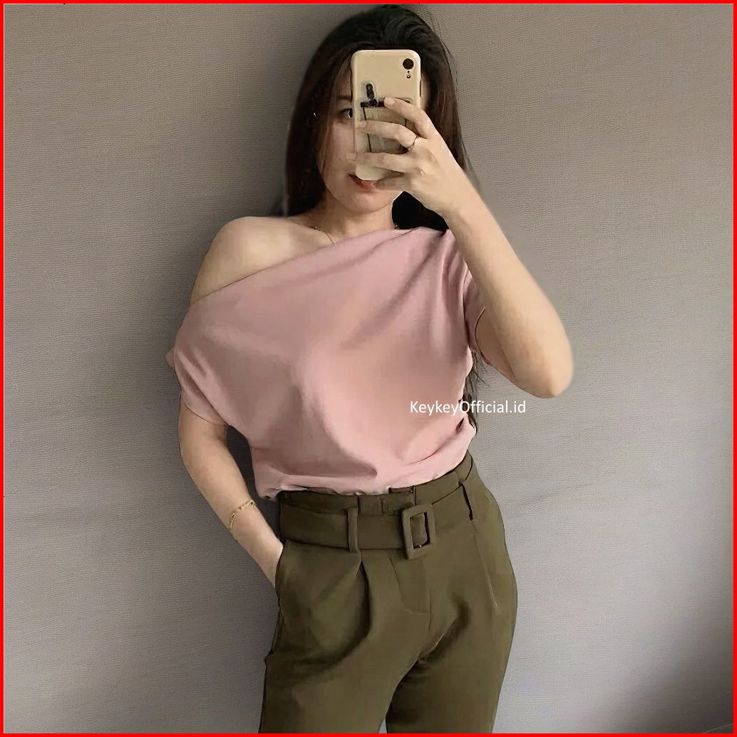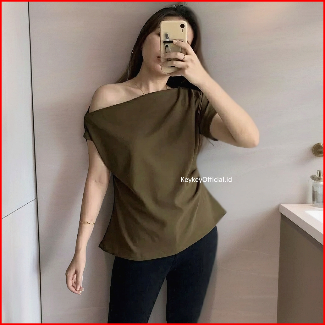 Key - 0723 Kino Top One Shoulder Blouse Wanita Sabrina Moscrepe Halus Blouse Wanita One Shoulder