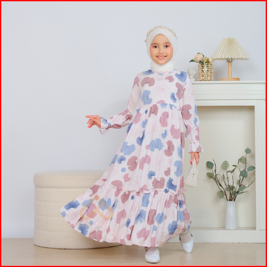 Tatsqif Gamis Anak Syari Dress Perempuan Usia 3-12 Tahun Berkualitas Motif Bunga Daurala Katun Rayon Good Quality