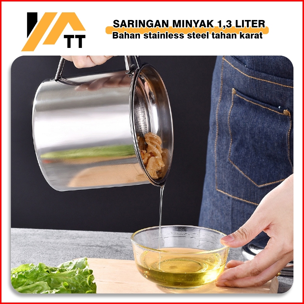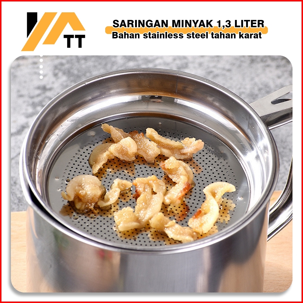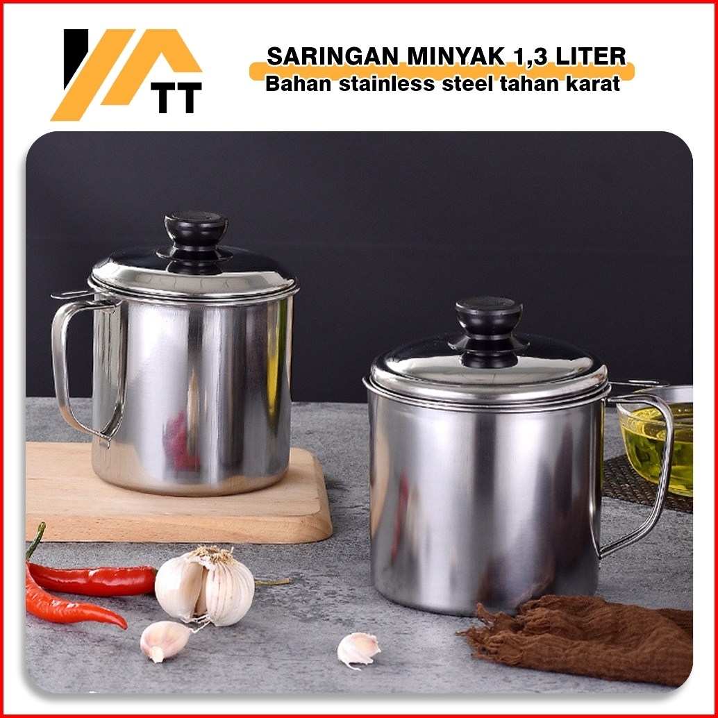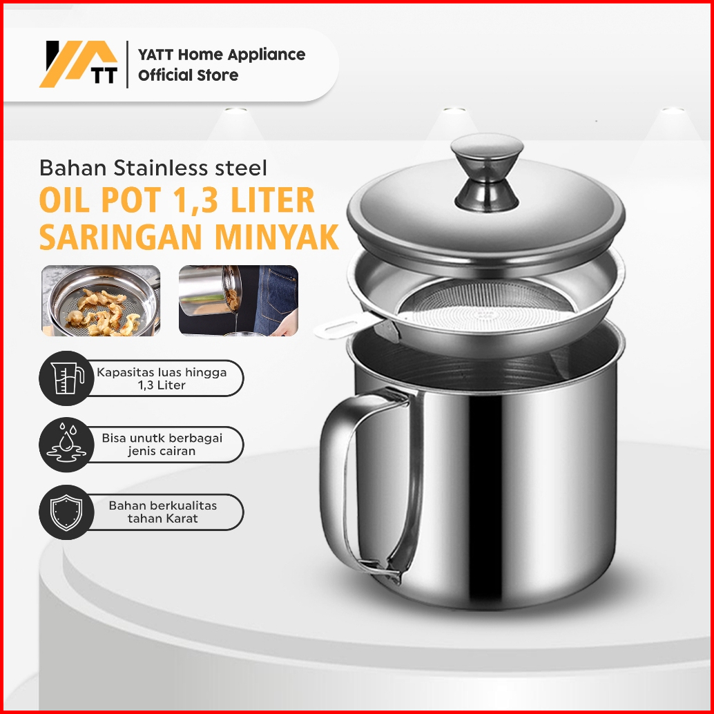 Yatt Wadah Saringan Minyak Bahan Stainless Steel Oil Pottempat Minyak Jelantah 1.3l Tebal Dan Kuat
