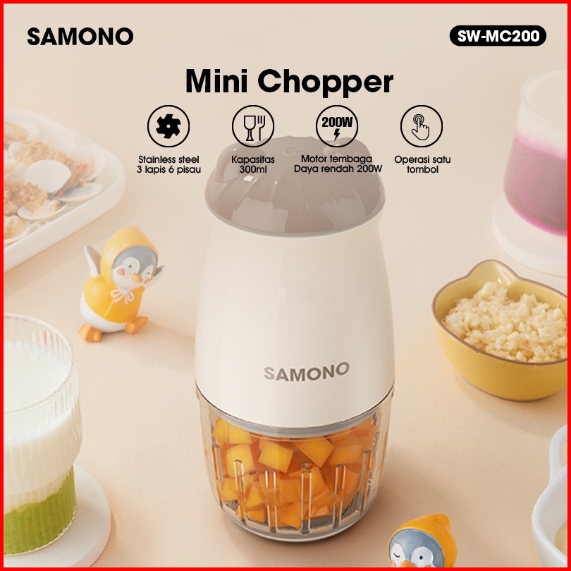 Samono Chopper Elektrik Kapasitas 300ml Wadah Kaca 6 Mata Pisau 200 Watt Garansi 1 Tahun Ganti Baru Sw-mc200