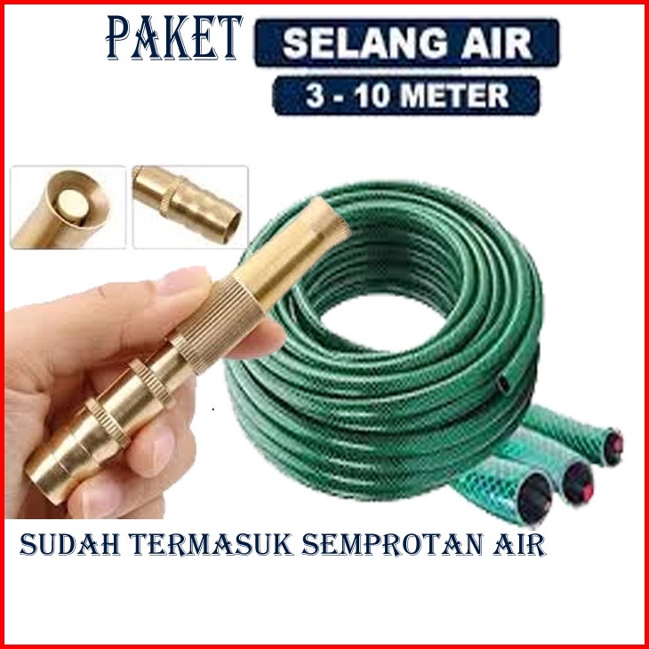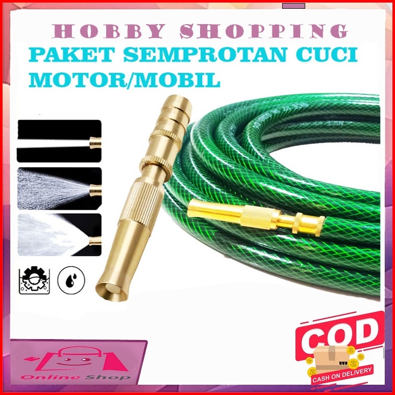 Paket Alat Cuci Motor Selang Air Serat Benang Hijau Semprotan Air Kuningan - Selang Semprotan Air Kuningan Cuci Motor