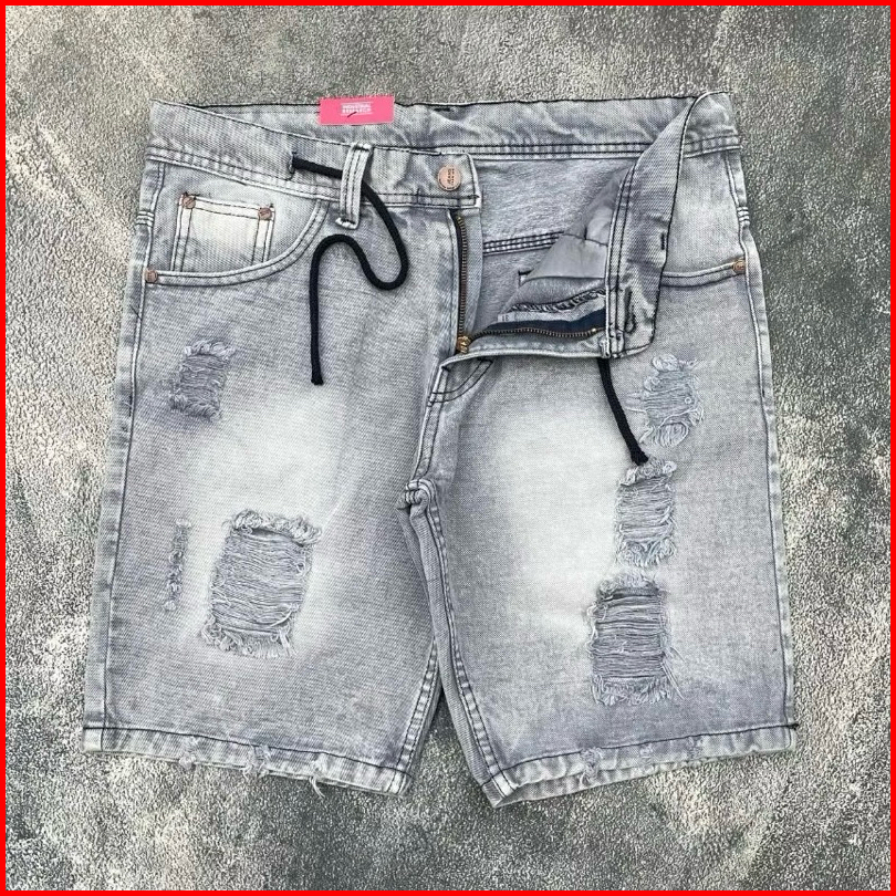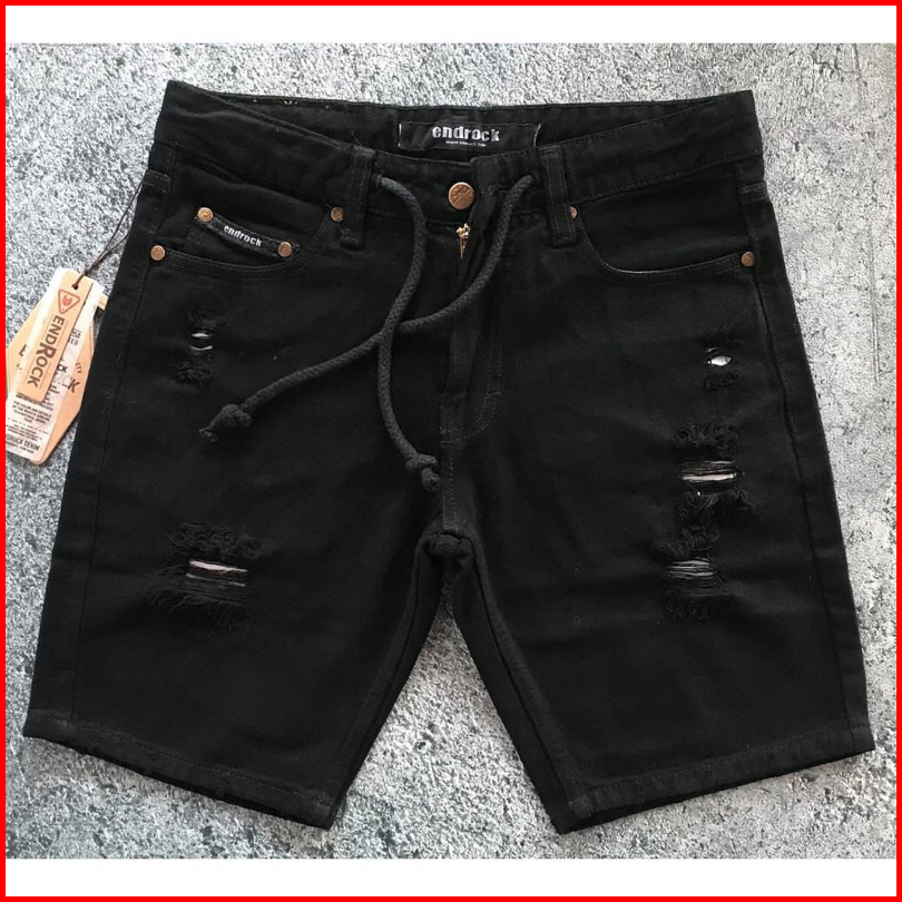 Celana Jeans Pendek Sobek Hitam Bermuda Pria Distro Premium