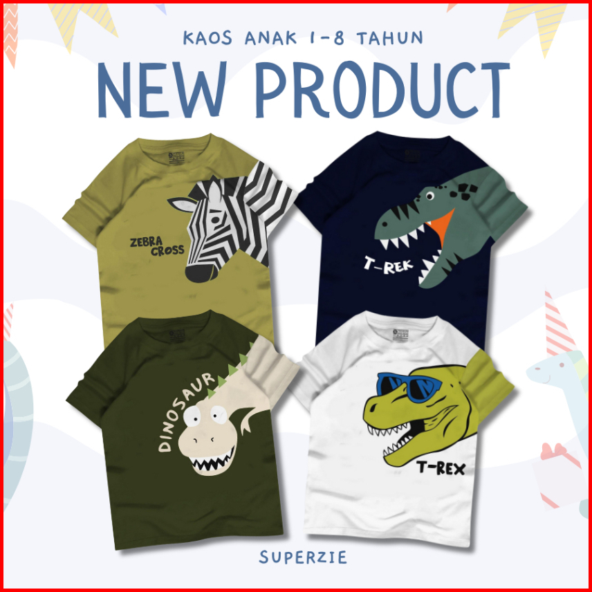 Rgkids Kaos Anak Laki Laki 4-13 Tahun Sl Series Binatang Kartun Dino Zebra Ikan Hiu Buaya Shark