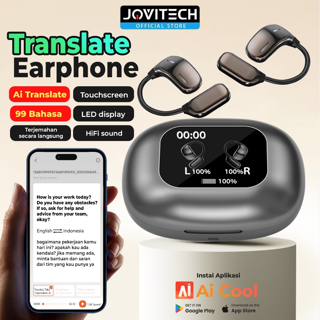 Jovitech EP76X Wireless OWS Smart Chip Ai Translation Headset Translate 150 Bahasa Bluetooth 5.4 Earphone TWS Digital Di