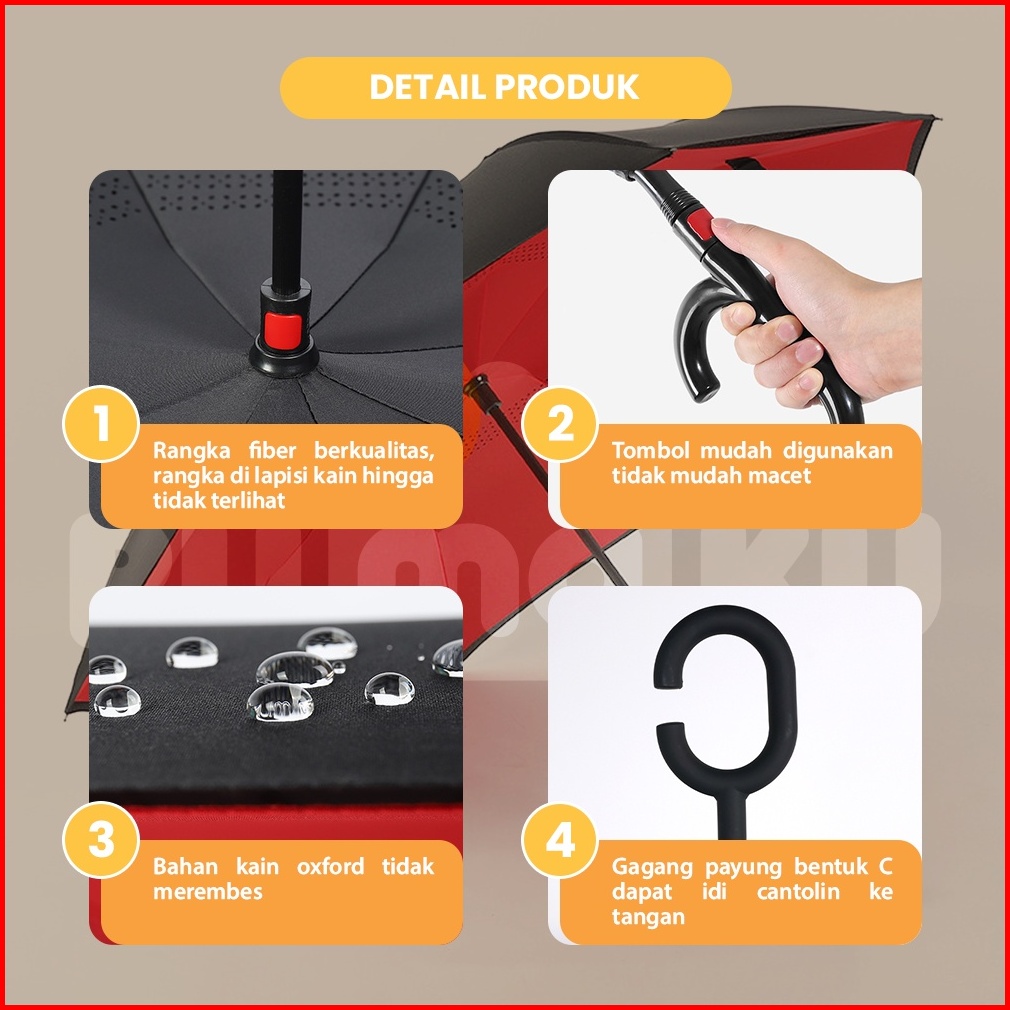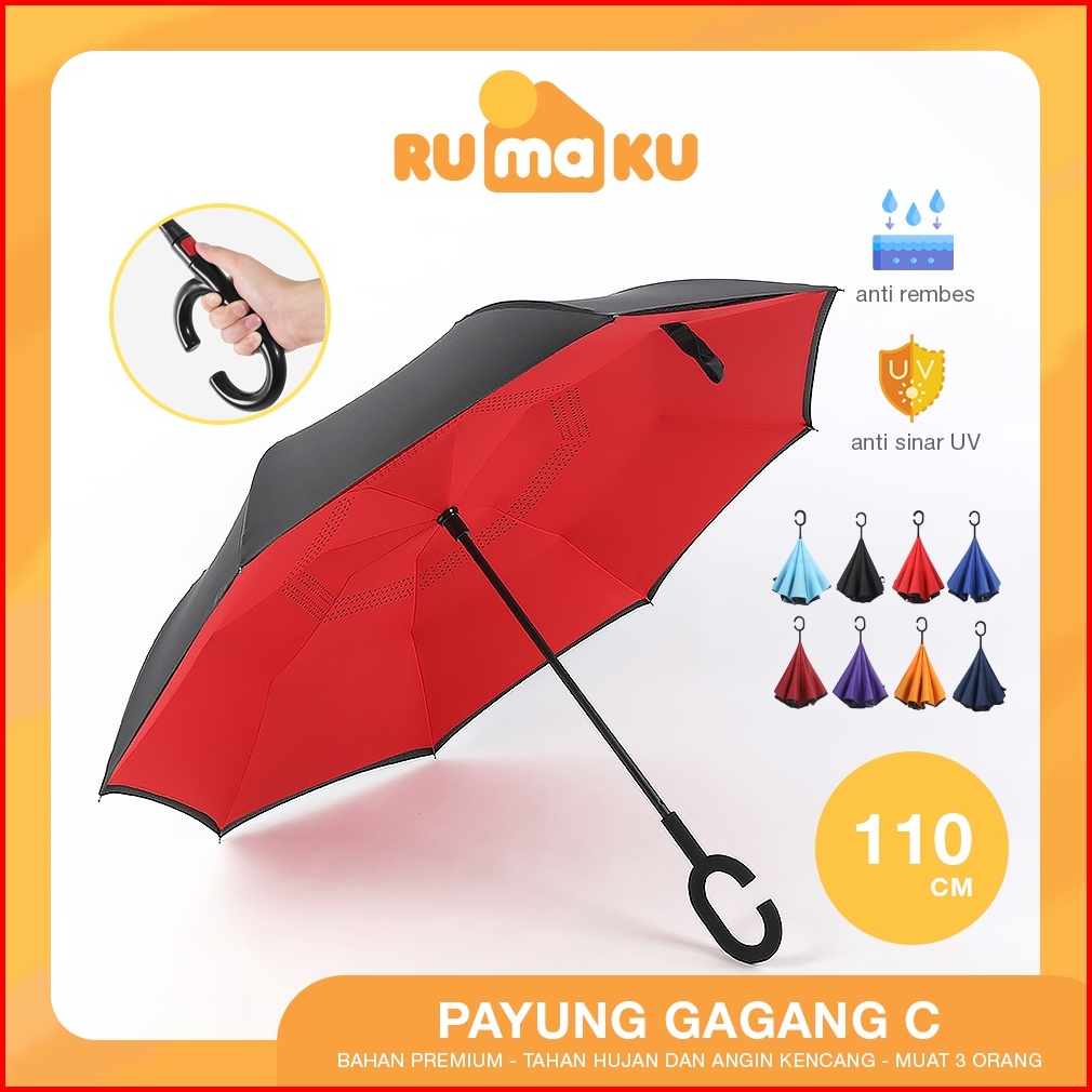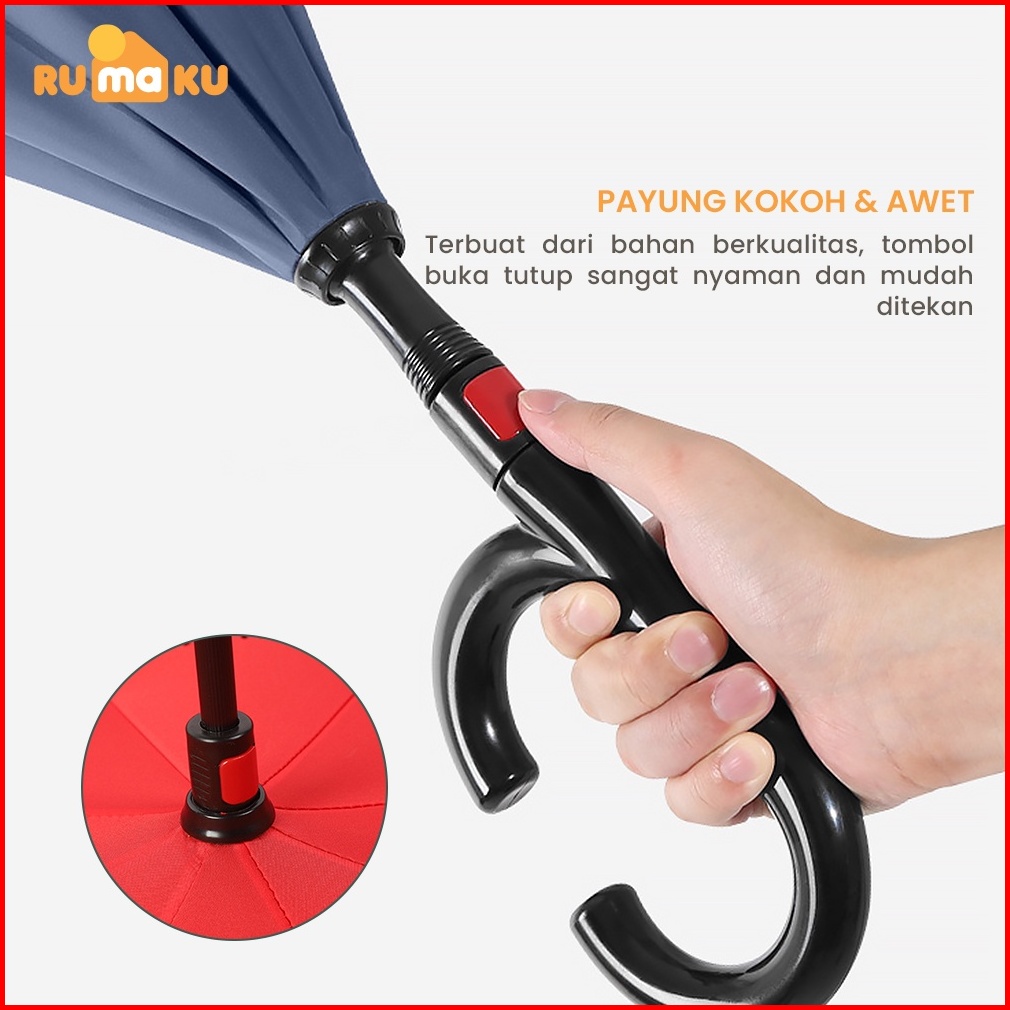 Rumaku Payung Terbalik Reverse Umbrella Payung Mobil Besar Gagang C