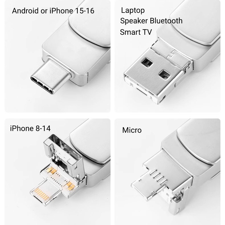 Kingston flashdisk 4 in 1 IOS OTG USB Flash Drive 512GB/1TB/2TB Rotation Pen Drive for iPhone/Android/PC [IOS+Micro+USB+