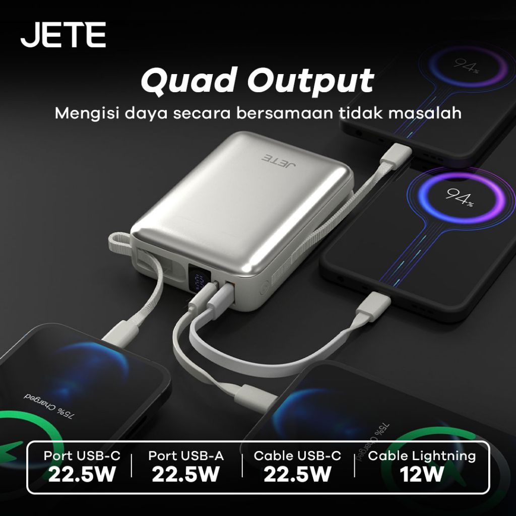 [Star] JETE Powerbank B7 20000mAh 22.5W Fast Charging with LED Display Dual Cable Type C & Lightning Dual Port USB