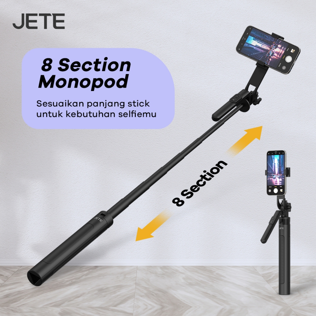 [Star] JETE Tripod Bluetooth H15 Portable Tongsis Selfie Stick 1.8m With Postel Wireless Remote Action Kamera HP
