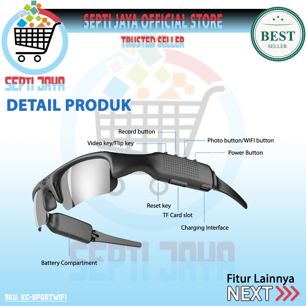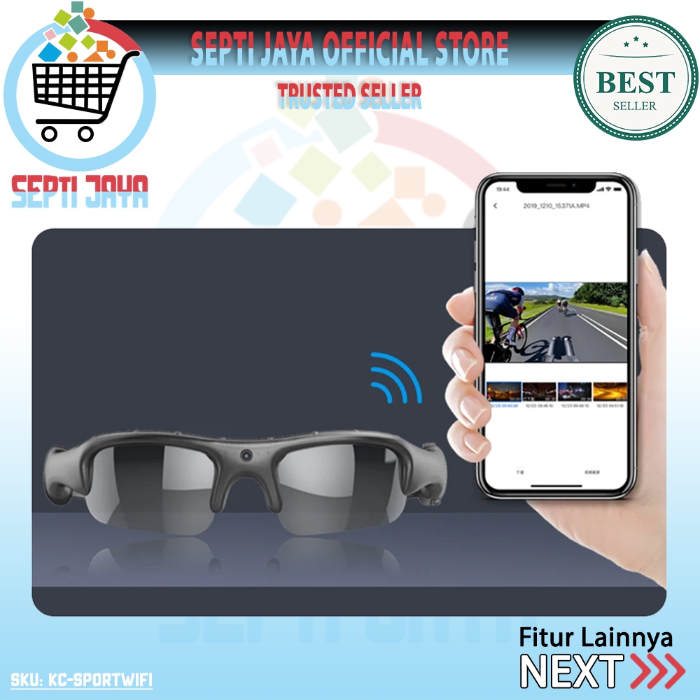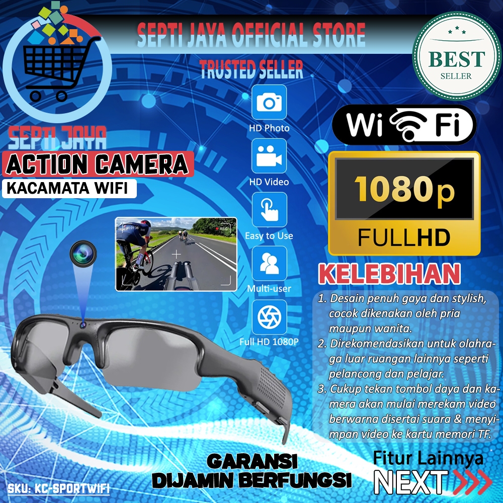 Septijaya Smart Camera Glasses Wifi Action Kacamata Kamera 1080P KC-SPORTWIFI Mini Action Sports Cam