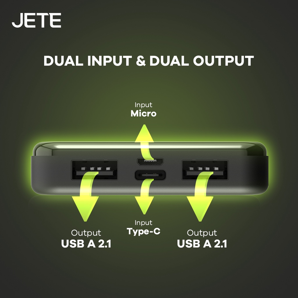 [Star] JETE Powerbank Fast Charging C8 10000mAh Power Bank Portable Dual USB Port Output Input Type C