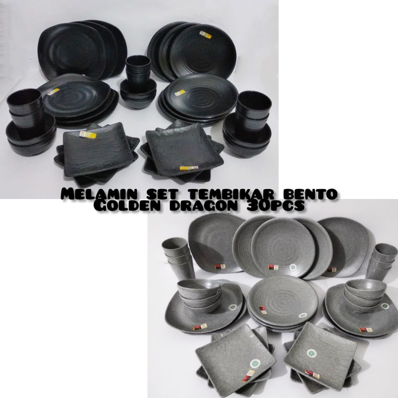 Paket Melamin Japan Stone isi 30pcs (P2308) en dragon - Ready warna abu abu, hitam