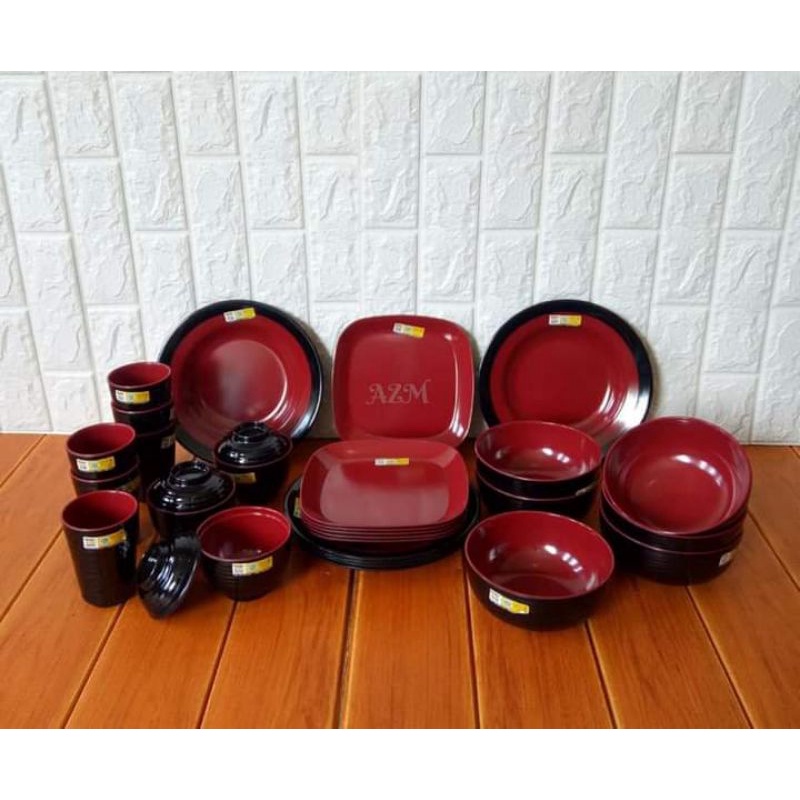 Piring Makan melamin set 30pcs en dragon/Piring dua warna