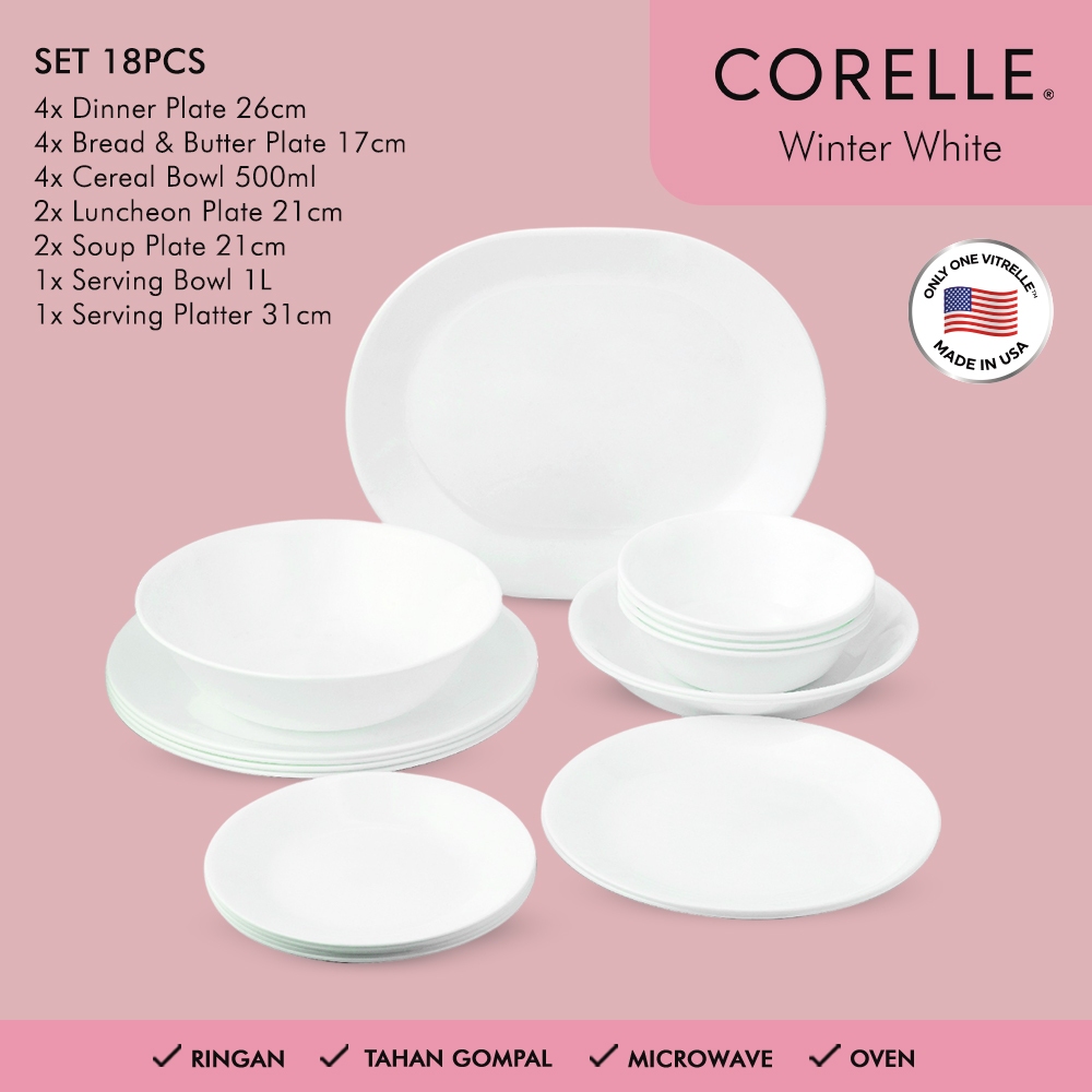 CORELLE Winter White Dinner Set / Set Piring Makan / Set Piring Mangkok