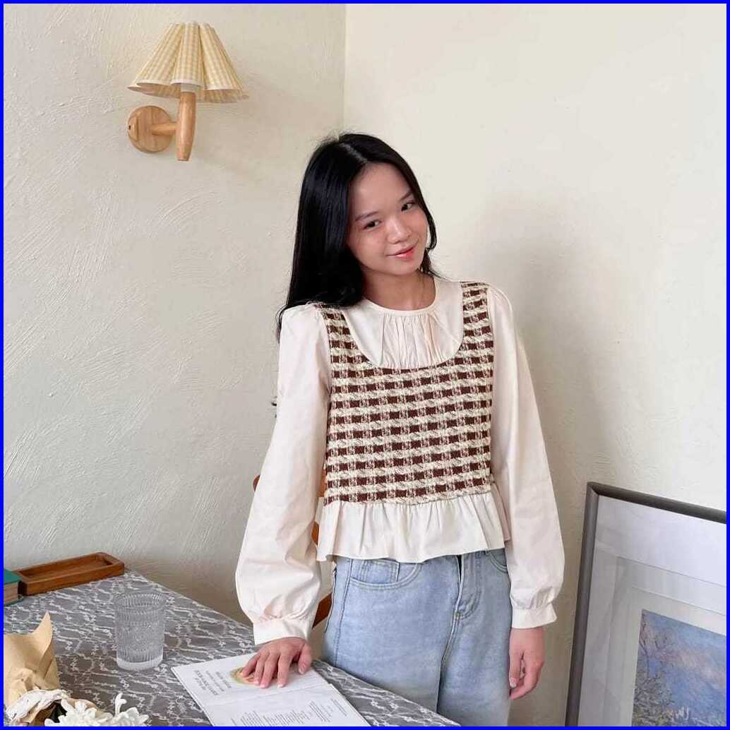 Ahreum Blouse Combinasi Knit Girly Style