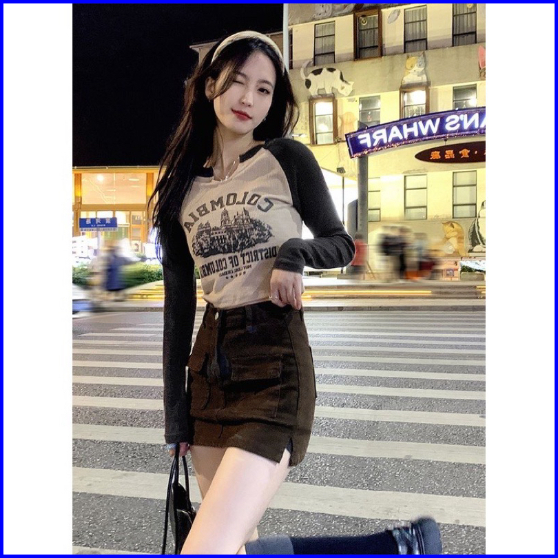Crop Top Wanita Longsleeve Ombia Ld 88 P 46