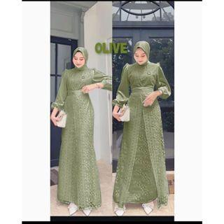 VANNAMILLE ID MALIKA WARNA TERBARU GAMIS BRUKAT MIX BAHAN SILK MEWAH ELEGAN DRESS PESTA WANITA OUTFIT LEBARAN BURGUNDY SM