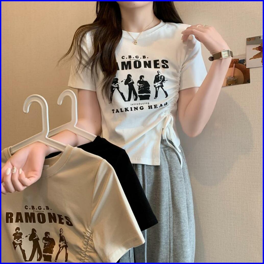 Crop Top Wanita Serut Ramones Knit Rib Ld 80 P 40