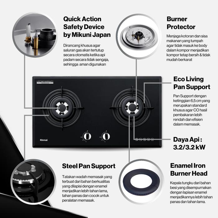 FLASH SALE RINNAI KOMPOR TANAM RB772RO (G) GLASS RB 772 RO 2 TUNGKU 70CM