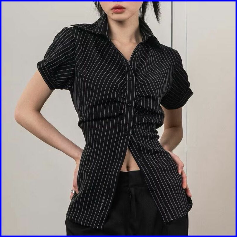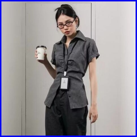 Essi Top Kemeja Salur Katun Fit Body
