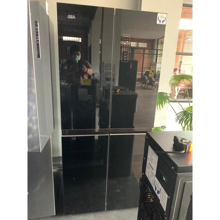 FLASH SALE GEA KULKAS SIDE BY SIDE 4 PINTU G4D 404 G4D404 BLACKHITAM KACA INVERTER MURAH GARANSI RESMI GEA