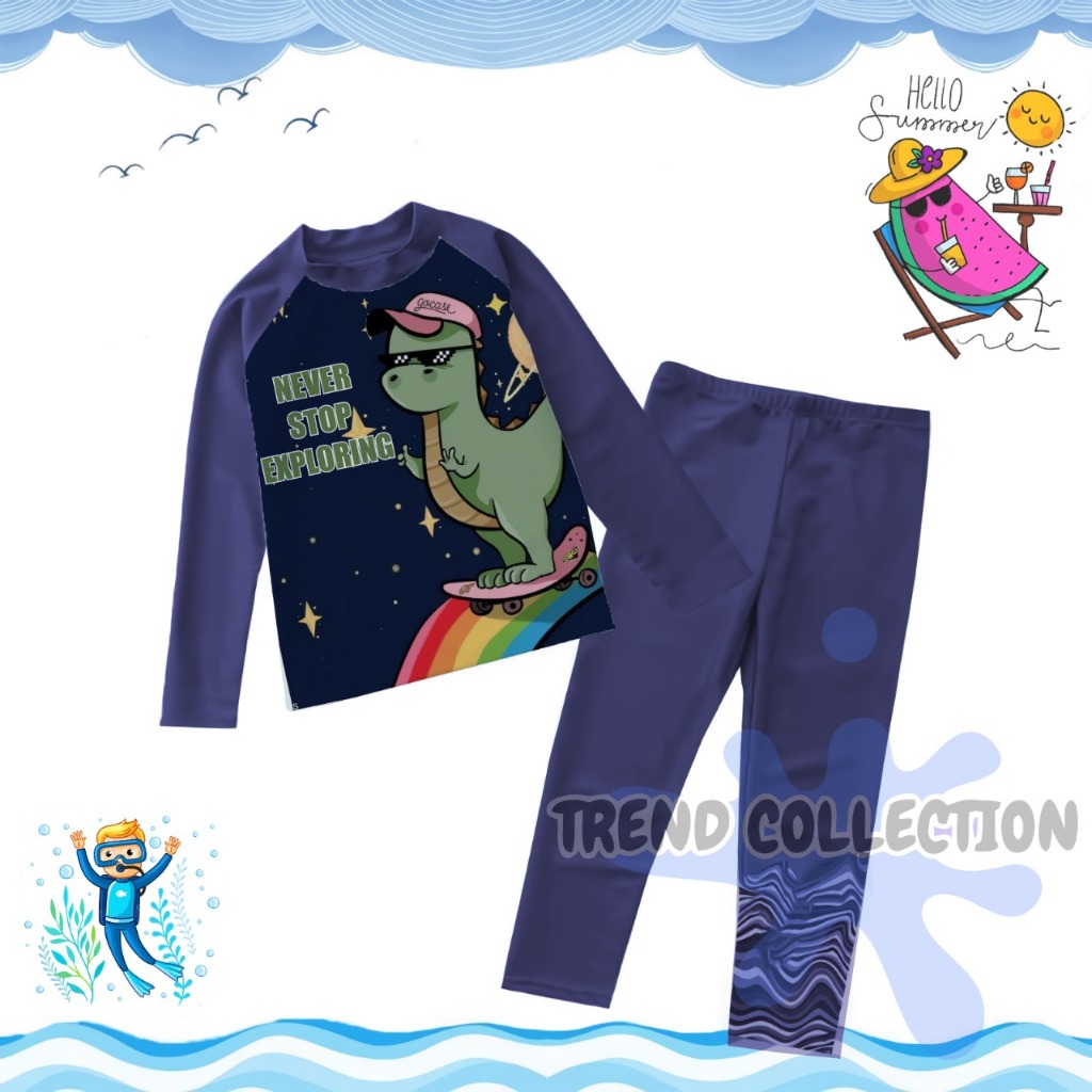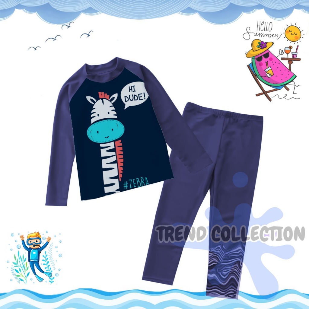 Baju Renang Anak Laki-laki/Baju Renang Lengan Panjang/Baju Renang Karakter Kombi Navy 1-8TH