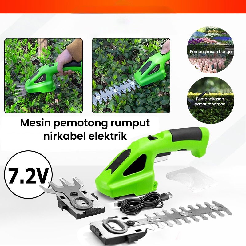 Pemangkas rumput dan semak tanpa kabel 7.2V, pemangkas pagar 2-in-1 yang dapat diisi ulang, alat pemangkas rumput rumah