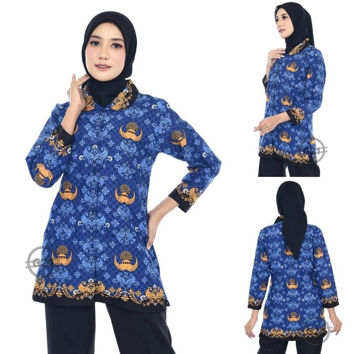 BAJU KORPRI TERBARU 2022 WANITA DAN PRIA PAKAI FURING BAHAN KATUN LENGAN PANJANG SERAGAM BATIK KORPRI WANITA DAN PRIA TERBARU STANDAR - WANITA, S