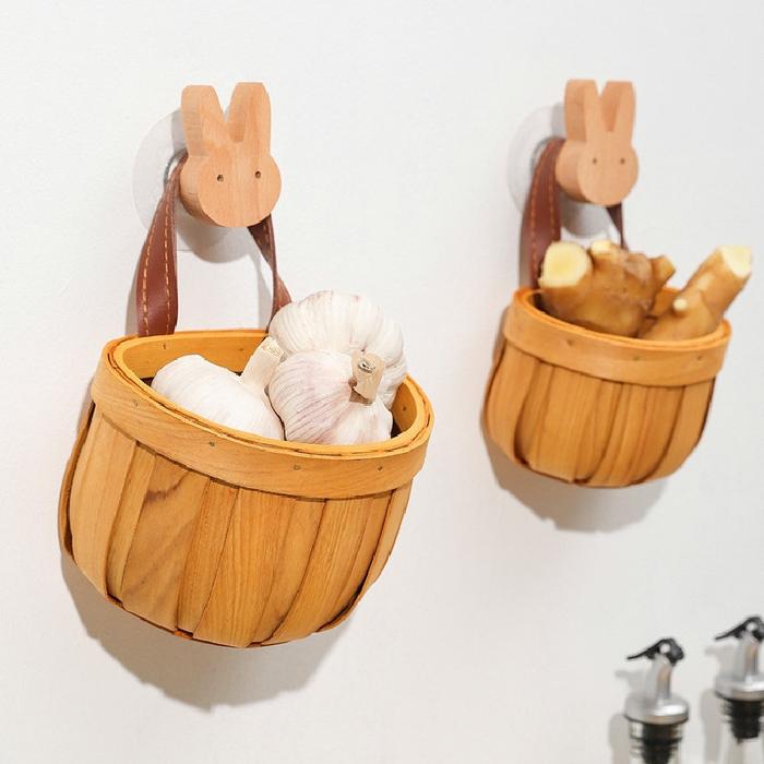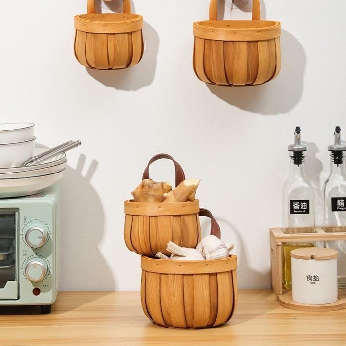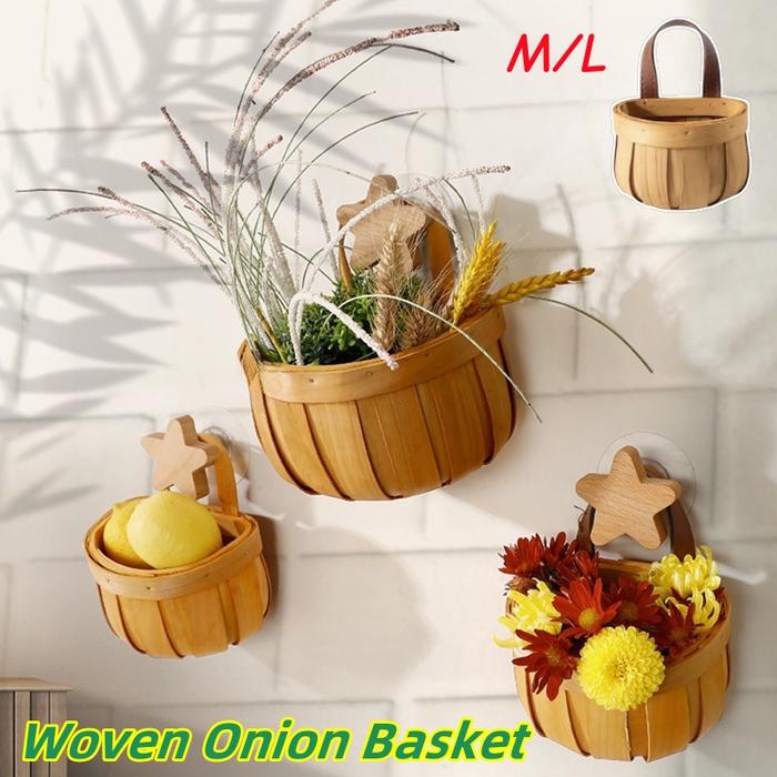Woven Onion Basket/ Keranjang Bawang Gantung Kantong Jaring Wadah Sayur/ Nampan Rotan Bulat