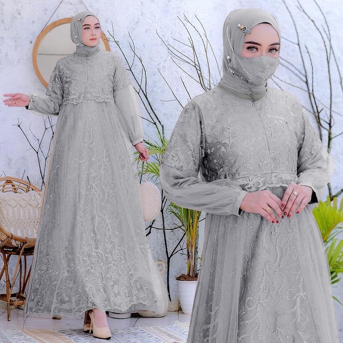 GAMIS SELVIA BRUKAT TILE MUTIARA KOMBINASISIZE SM L XL XXL GAMIS PESTA GAMIS KONDANGAN GAMIS BROKAT MUSLIMAH KANCING MUSLIM